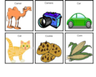 Flashcard activity that shows text and/or picture on one side of the card, then on the other side.